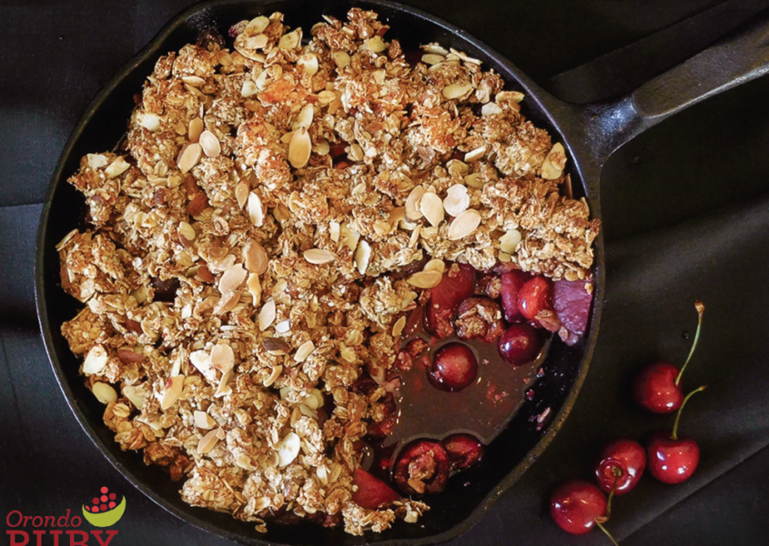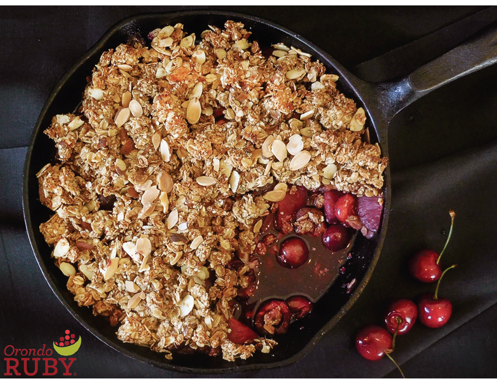 The Orondo Ruby® cherry has a distinct flavor and the higher level of acid compliments juicy plums perfectly in this easy summer crisp recipe. Don’t forget the vanilla ice cream!